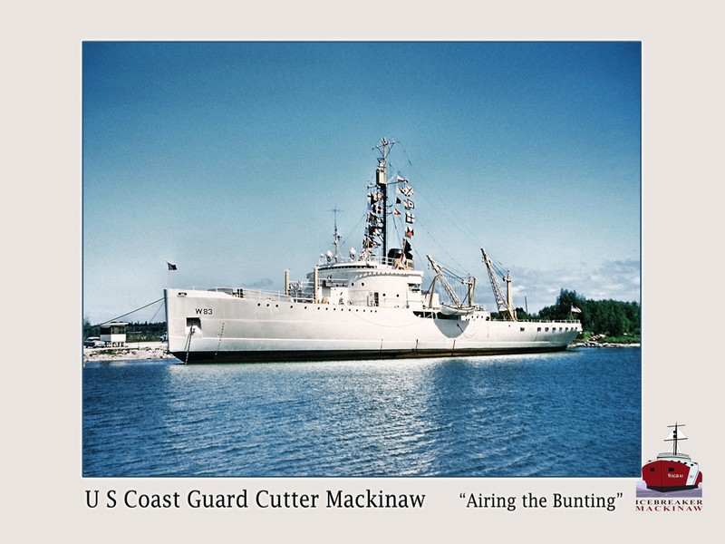 The United States Coast Guard Cutter MACKINAW WAGB-83 was built as part of the war effort during World War II to meet the heavy demands placed on industry for an increase in production of war materials. Tremendous increases in the movement of iron ore, limestone and coal for the nation’s steel mills were particularly necessary. In order to keep tonnage on the move into the winter months an icebreaker was needed. Congress authorized construction of MACKINAW on December 17, 1941, ten days after the attack on Pearl Harbor. Funds were provided from a Special Presidential Fund used to expedite desirable projects.