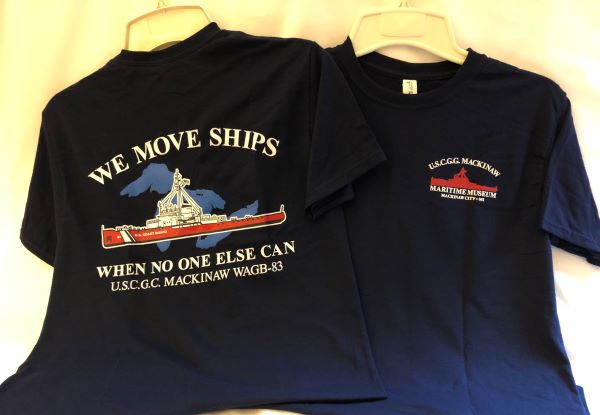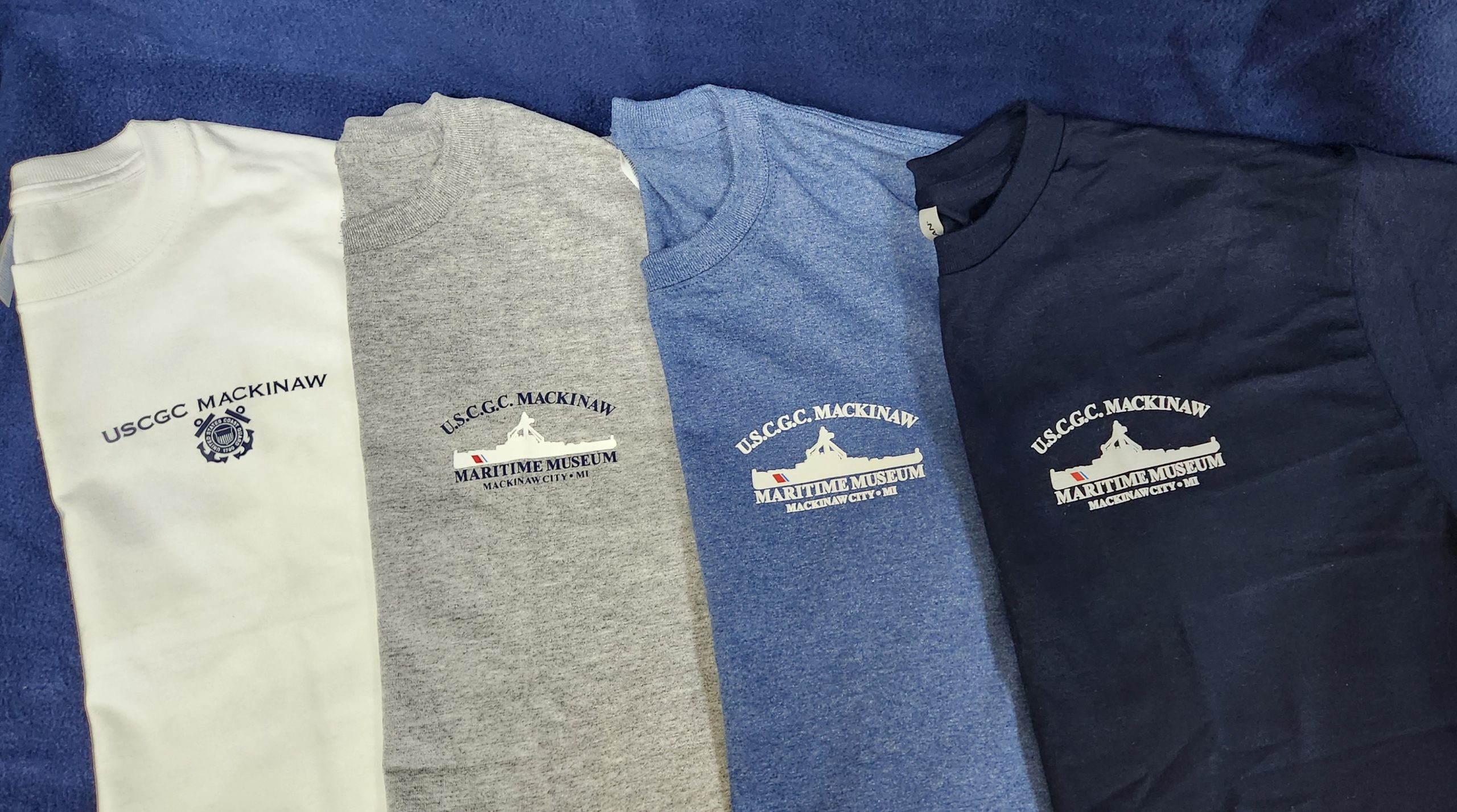 Our most popular t-shirt is available in navy blue, medium blue, gray and white.